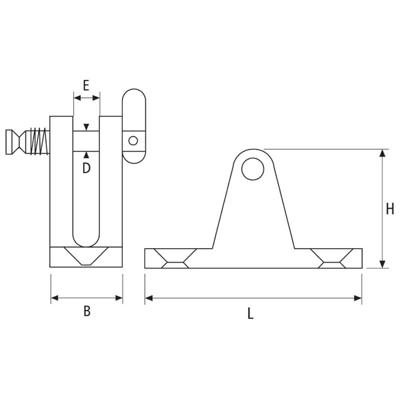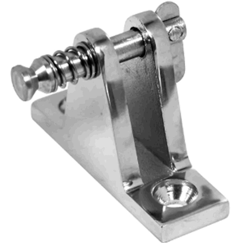 This Stainless Steel 316 Bimini Deck Hinge with Removable Spring Pin (90°) provides a secure, durable mounting point for bimini tops, sprayhoods, and cockpit covers. The 90° angle makes it ideal for mounting on horizontal surfaces, while the quick-release spring pin allows fast removal or folding of the frame without tools — perfect for storage, trailering, or passing under low bridges.