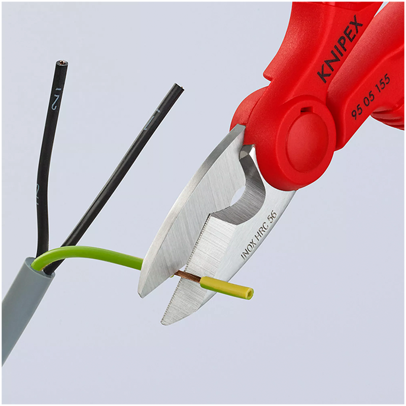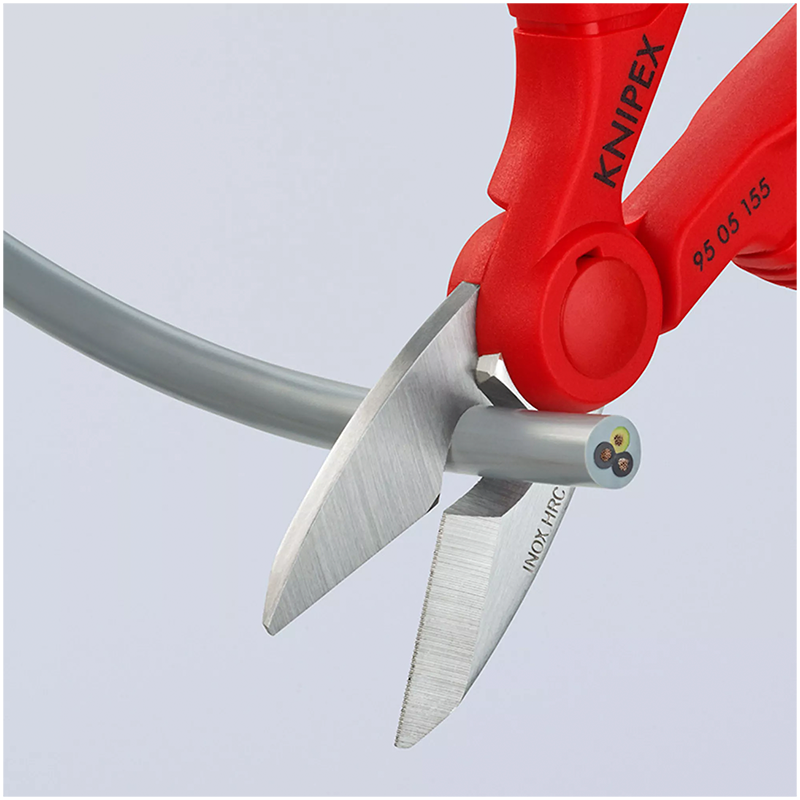 The Knipex Electricians’ Shears are a professional-grade cutting tool designed for electrical and installation work, offering precision, durability, and reliable handling. The blades are manufactured from stainless steel with micro-serrated cutting edges, allowing clean and controlled cutting without slipping, even when working with smooth insulation materials.