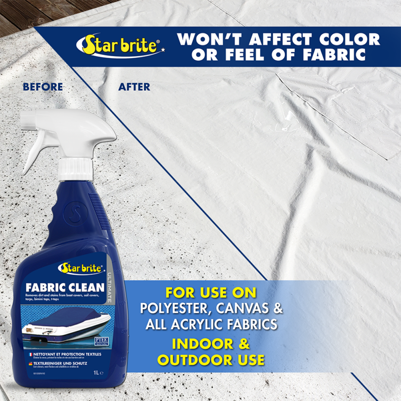 Keep marine fabrics spotless and fresh with Star brite Fabric Clean. Its powerful, biodegradable formula penetrates deep into fabric fibers to remove dirt, grease, and mildew stains without harming stitching or waterproof coatings. Perfect for boat covers, biminis, awnings, and upholstery.