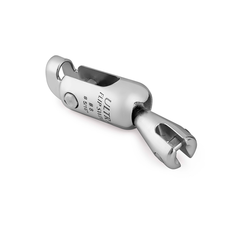The Ultra Marine Ultra Flip Swivel is an anchor connector designed to assist with the correct alignment of the anchor as it is retrieved into the bow roller. Unlike standard swivels that only allow rotation, the Ultra Flip Swivel features a guided geometry intended to help prevent the anchor from approaching the bow roller in an incorrect orientation, reducing the risk of jamming and manual correction at the bow.